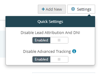 - Select the Settings button, then enable the Lead Attribution and Advanced Tracking toggles.