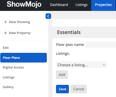 - Select the Floor Plans tab in the left navigation and then create floor plans for your property. When creating a floor plan, take note of the following: