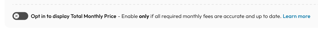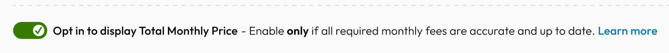 After adding at least one required monthly fee, the following toggle appears in the Fees & Pricing Settings: