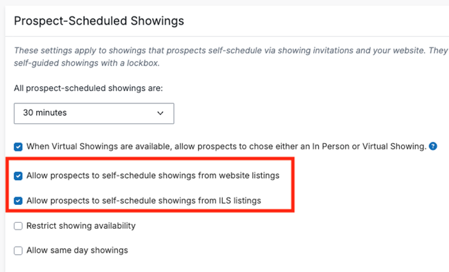 - Ensure the following checkboxes are enabled under the Prospect-Scheduled Showings section: