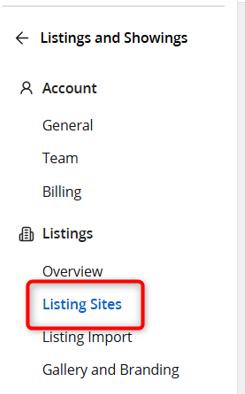 - Select Listing Sites under Listings in the left navigation.