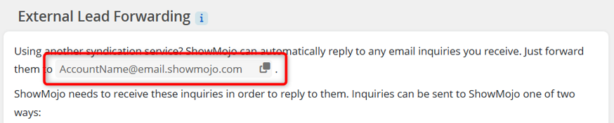 Your ShowMojo auto-reply email address is used for external lead forwarding.