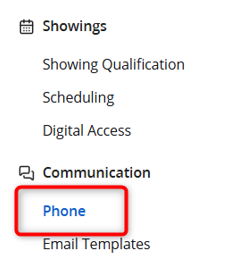 - Select Phone under Communication in the left navigation.